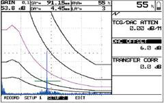 l40 DB動態多曲線DAC/TCG選項可修正材料衰減和波形發散引起的距離/振幅變化,并能單獨編輯或插入紀錄的回波。一次可在屏幕上畫出4條DAC曲線,從而在原始紀錄的DAC曲線外顯示+/- dB曲線。可紀錄多達16個數據點,每微秒的曲線斜度為12dB。符合或超過了TCG的工業要求。