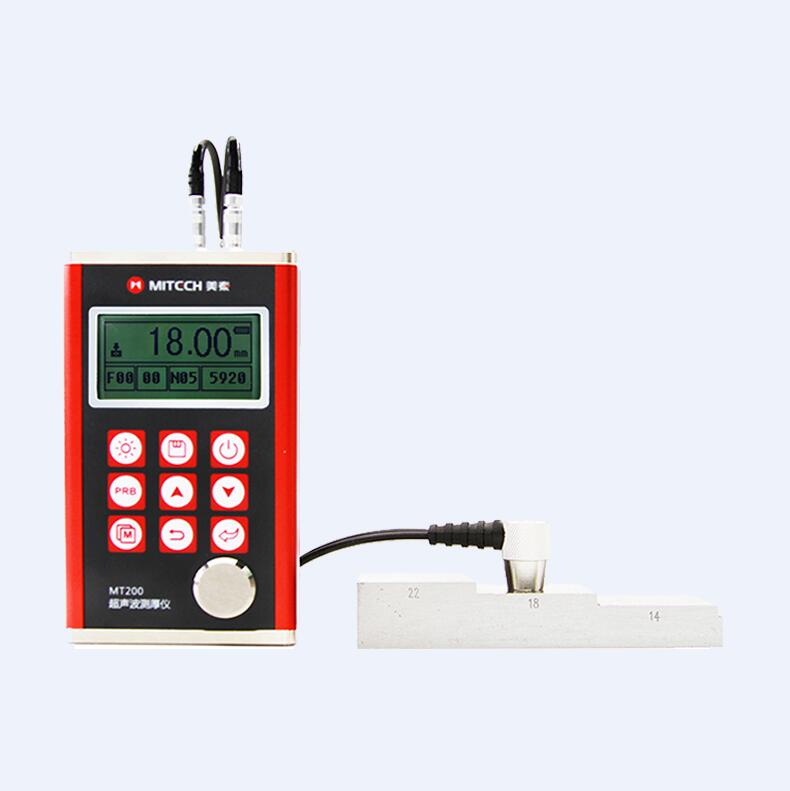 MT200超聲波測厚儀,采用新的高性能、低功耗微處理器技術,基于超聲波測量原理,可以測量金屬及其它多種材料的厚度,并可以對材料的聲速進行測量。可以對生產設備中各種管道和壓力容器進行監測,監測它們在使用過程中受腐蝕后的減薄程度,也可以對各種板材和各種加工零件作準確測量。本儀器可廣泛應用于石油、化工、冶金、造船、航空、航天等各個領域。
