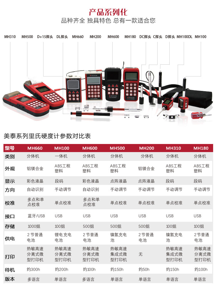 MH180便攜式里氏硬度計基于里氏硬度測量原理,可方便快捷地現(xiàn)場檢測多種金屬材料的硬度,支持里氏、布氏、洛氏等多種硬度制氏間的自由轉(zhuǎn)換。它采用高對比度段碼式液晶顯示,體積小,重量輕,便于攜帶,性能穩(wěn)定可靠。被廣泛地應(yīng)用于金屬加工制造業(yè)、特種設(shè)備、商檢等領(lǐng)域。可滿足工業(yè)生產(chǎn)硬度檢測的常規(guī)需求,質(zhì)優(yōu)價廉,是實用經(jīng)濟款硬度計。