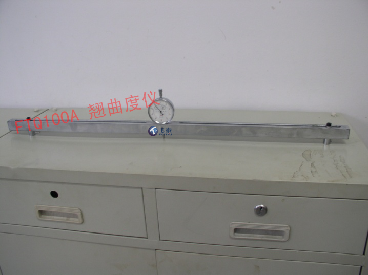 用于柜類、桌類等測平面翹曲度應采用誤差不大于0.1MM的翹曲度測定器具。測定時,將器具放置在試件的對角線上,測量試件中點與基準直線的距離,以其中一個大值為翹曲度平定值。