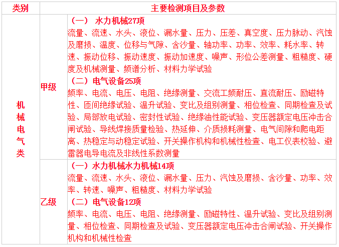 水利工程質量檢測單位資質分為巖土工程、混凝土工程、金屬結構、機械電氣和量測5個類別,每個類別分為甲級、乙級2個等級