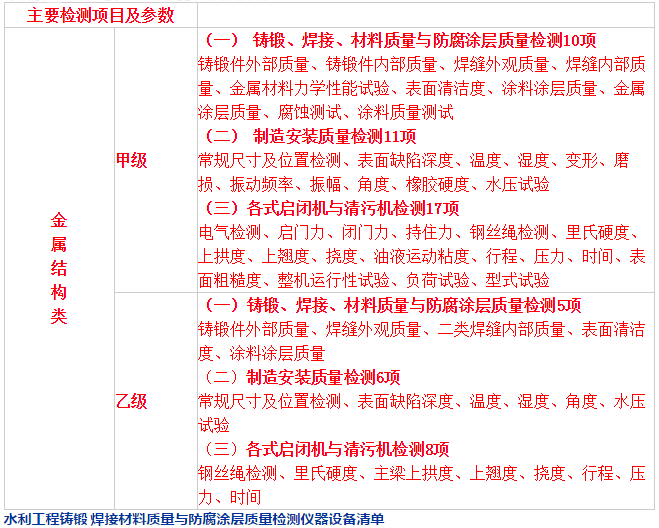 水利工程鑄鍛 焊接材料質量與防腐涂層質量檢測儀器設備清單