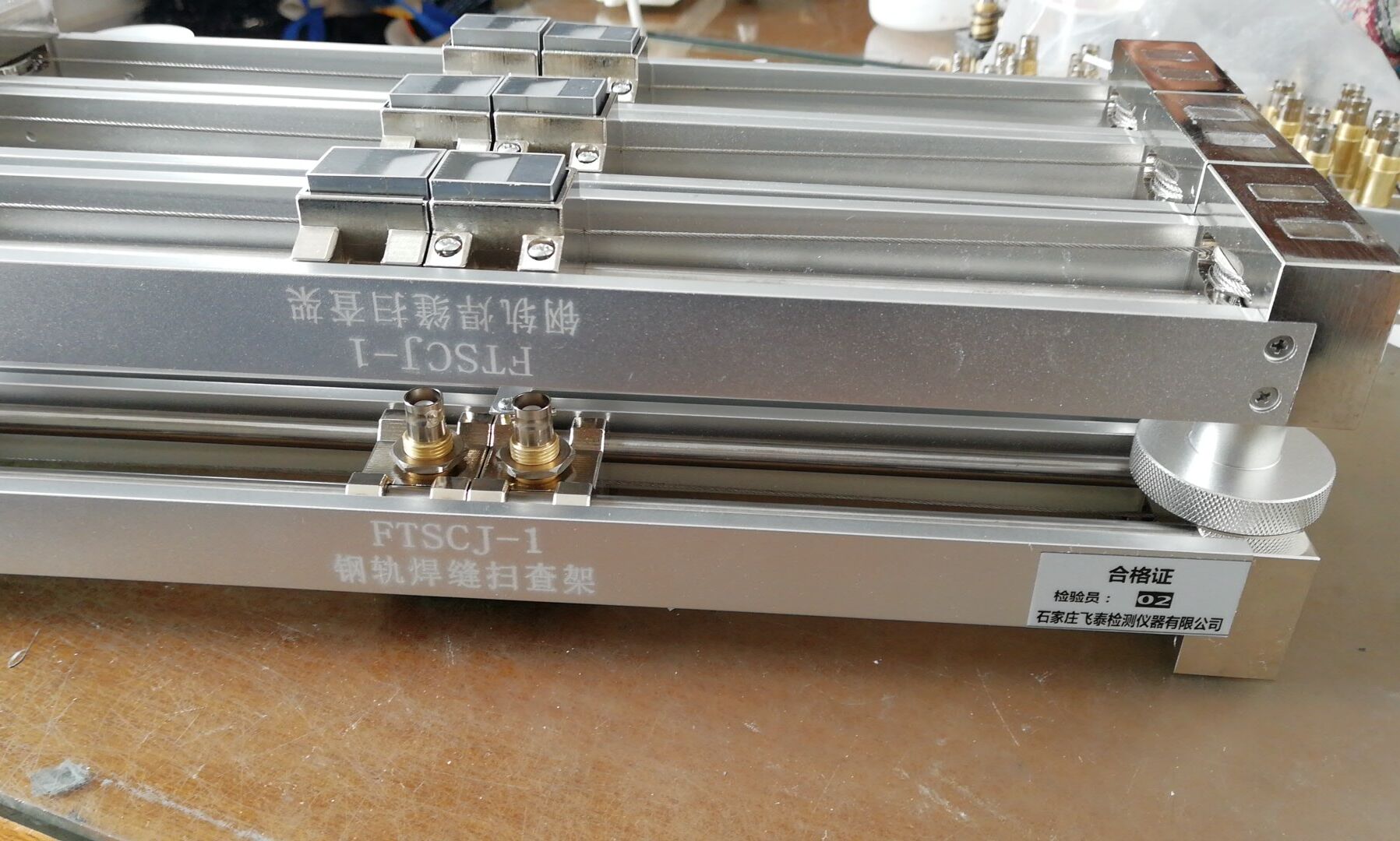 鋼軌焊縫掃查架可以配合任何具有具有一發一收接口的超聲儀器使用。